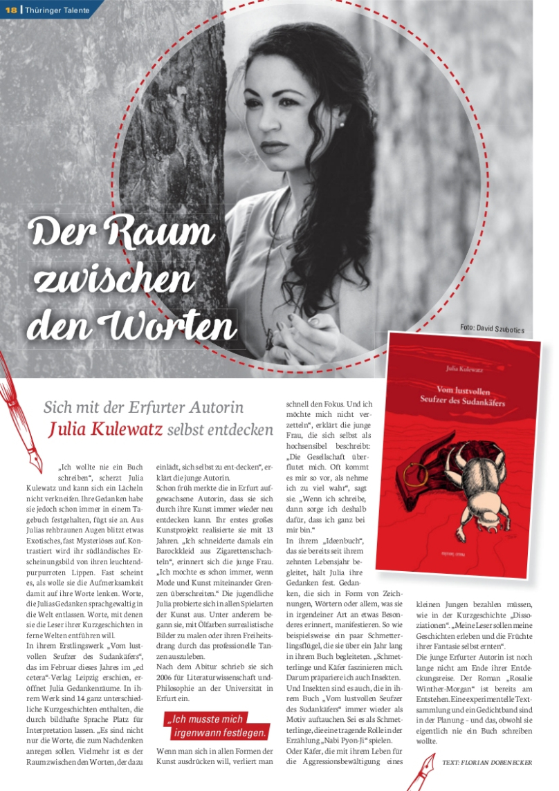 Julia Kulewatz wurde in einer stürmischen Oktobernacht unter einem roten Jägermond von einer ziemlich wilden Erfurterin in der Nähe von Berlin in die Welt gesetzt. Seit Blut dicker als Wasser ist, kehrt sie abwechselnd nach Berlin und Erfurt heim. Unterwegs hat sie ihr Herz an Seoul verloren. Nur das Herzverlieren hat sie mit einigen ihrer Figuren gemeinsam, denn auf ihren Kopf achtet sie streng.